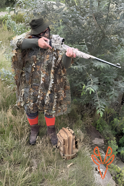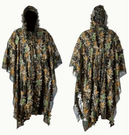 Combinaison fine et légere, elle est parfaite pour se camoufler pour l'approche, poste au pigeon, affût à l'arc, etc..
